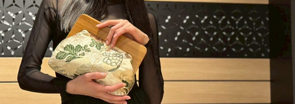 Fabrics once crafted as bridal attire and women’s formal wear have been upcycled into bags.